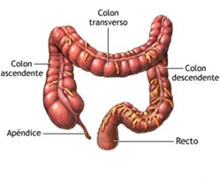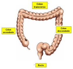 Intestino Grosso à mais grosso que o intestino delgado. Porém, mede apenas um metro e meio. É formado por: . Cólon Ascendente; . Cólon Transverso; . Cólon Descendente.