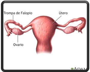 A vagina é revestida por uma membrana mucosa, cujas células liberam glicogénio. Bactérias presentes na mucosa vaginal (Lactobacilos) fermentam o glicogénio, produzindo ácido láctico que confere ao meio vaginal um pH ácido, que impede a proliferação da maioria dos microrganismos patogénicos. Durante a excitação sexual, a parede da vagina se dilata e se recobre de substâncias lubrificantes produzidas pelas glândulas de Bartholin facilitando a penetração do pénis. Durante a fase proliferaria do ciclo menstrual, o muco é fluido e depois da ovulação ele se torna viscoso, formando um tampão que se converte numa barreira protectora. As características de fluidez ou viscosidade do muco cervical dependem respectivamente da acção hormonal do estrogénio e da progesterona. Vulva A genitália externa ou vulva é delimitada e protegida por duas pregas cutâneo-mucosas intensamente irrigadas e enervadas - os grandes lábios. Na mulher em idade pós-puberdade, os grandes lábios são cobertos por pêlos pubianos. Mais internamente, outra prega cutâneo-mucosa envolve a abertura da vagina - os pequenos lábios - que protegem a abertura da uretra e da vagina. Na vulva também está o clítoris, formado por tecido esponjoso eréctil, homólogo ao pénis do homem. Trompas de Falópio Tubas uterinas, ovidutos ou trompas de Falópio: são dois ductos que unem o ovário ao útero. Seu epitélio de revestimento é formado por células ciliadas. Os batimentos dos cílios microscópicos e os movimentos peristálticos das tubas uterinas impelem a gameta feminina até o útero. Ovários São dois, um de cada lado do útero. Os ovários são as gônadas femininas. Produzem estrogénio,progesterona e hormônios sexuais femininos. Têm forma oval e também produzem os ovócitos.