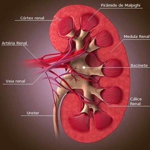 São os principais órgaos do sistema excretor. Tem duas funções: . Função Depuradora à consiste em filtrar o sangue, removendo residuos e água. Assim, produz um liquido de cor amarela – a urina; . Função Reguladora à consiste em regular a quantidade de água e sais minerais no nosso organismo. Constituição do Rim: Medula Renal à Camada interna estriada radialmente que apresenta pirâmides de malpighi. Cortex Renal à Camada exterior do rim, de aspecto granuloso. Bacinete à Grande canal contínuo com o uréter.