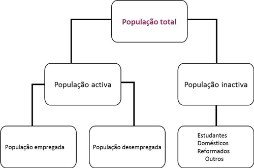População activa - representa um indicador da força de trabalho de uma determinada economia num determinado momento e corresponde ao conjunto de todos os indíviduos que exercem uma actividade remunerada (os chamados empregados).