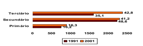 Sendo o sector terciário o que mais cresceu nas últimas décadas, explica-se por: . Melhoria do nível de vida; . Aumento do número de mulheres nos serviços; . Surgimento de novas actividades; . Desenvolvimento dos serviços sociais e de administração pública; Desemprego