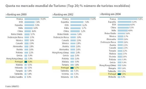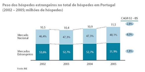 2006 Foi um ponto de viragem em termos do crescimento dos hóspedes estrangeiros, face ao ano anterior, Portugal apresentou um crescimento de 8,8%. O turismo internacional em Portugal está dependente de quatro mercados emissores: . Reino Unido . Espanha . Alemanha . França