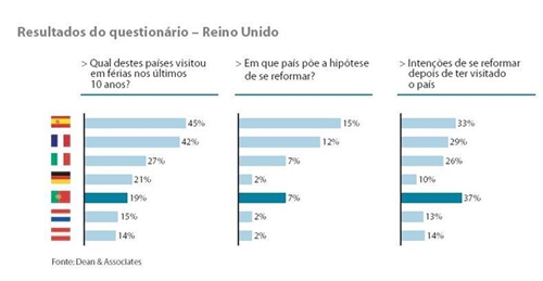 Num outro estudo realizado no Reino Unido a pessoas com mais de 50 anos, apenas 19% afirmam ter visitado o nosso país nos últimos 10 anos, valores que constatam os 45% que visitaram a Espanha e 42% a França.