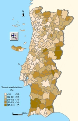 Portugal tem quase um milhão de analfabetos Portugal é o país da Europa com maior percentagem de pessoas que não sabem ler nem escrever. Ainda assim, nos últimos 30 anos, o analfabetismo diminuiu 17 por cento, segundo os dados do CENSOS de 2001. Quando se assinala quarta-feira o Dia Mundial para a Alfabetização, criado pelas Nações Unidas, os dados mais recentes do Instituto Nacional de Estatística (INE) revelam que nove em cada 100 portugueses não sabem ler nem escrever. Segundo os dados do último CENSOS, o número de analfabetos atingia os nove por cento, tornando Portugal no país da Europa com maior percentagem de pessoas analfabetas. As mulheres são as que mais contribuem para o peso dos números. Em 2001, 11,5 por cento das mulheres declararam-se analfabetas contra apenas 6,3 por cento dos homens. Em 1970 o cenário apontava para 31 por cento das mulheres portuguesas que não sabiam ler nem escrever. Os homens analfabetos eram 19,7 por cento. A diminuição do analfabetismo ao longo dos anos deve-se, essencialmente, à escolarização progressiva dos jovens, mas também à morte das pessoas idosas, aquelas que mais contribuem para a grande percentagem de pessoas analfabetas. Os dados revelam, ainda, que, nos últimos 30 anos, a percentagem de população sem qualquer qualificação baixou de 61 para 26 por cento, que o peso da população com o ensino secundário completo passou de 2,3 para 11 por cento e que o peso do ensino superior passou de 0,6 para 6,5 por cento. Portugal é, também, o país da OCDE (Organização para a Cooperação e Desenvolvimento Económicos) que tem maior taxa de abandono escolar: apenas 20 por cento dos portugueses atinge o ensino secundário, ficando-se a grande maioria pela escolaridade obrigatória, de acordo com o último relatório da instituição. Taxa de alfabetização da população adulta portuguesa é de 92,5% A taxa de alfabetização aumentou 5% em Portugal, na última década. Em todo o mundo, mais de 121 milhões de crianças não frequentam a escola. Lisboa - A taxa de alfabetização entre a população adulta portuguesa aumentou cinco pontos percentuais nos últimos dez anos, passando de 87,5% para 92,5%, segundo o relatório anual da Unicef sobre a situação mundial da infância, divulgado esta quinta-feira. De acordo com o documento, em 1990, a taxa de alfabetização dos homens portugueses situava-se nos 91% e dez anos depois subiu para os 95%. No caso das mulheres, o relatório revela que a taxa subiu de 84% para 90%. No entanto, estes valores reportam-se a um período anterior ao último recenseamento geral da população em 2001. O Censos 2001 revelou que nove em cada 100 residentes em Portugal, com dez ou mais anos, não sabe ler nem escrever, sendo as mulheres e os distritos do sul do país os mais penalizados pelo analfabetismo. A nível global, a Unicef alerta para o fato de mais de 121 milhões de crianças, 65 milhões dos quais meninas, não frequentarem actualmente a escola. Todos os anos ficam de fora da escola mais nove milhões de meninas do que rapazes. Tendo como tema central a educação das crianças do sexo feminino, o relatório, intitulado "Situação Mundial da Infância 2004", refere que as iniciativas internacionais têm "defraudado de forma grave as crianças e jovens do sexo feminino, deixando centenas de milhões de meninas e mulheres sem instrução nem aptidões que lhes permitam melhorar a sua situação, a dos filhos ou das comunidades em que vivem". "Devido ao carácter persistente e muitas vezes subtil da discriminação entre sexos, que existe na maior parte das sociedades, as moças são as primeiras sacrificadas - são as últimas a ser matriculadas na escola e as primeiras a abandoná-la quando as dificuldades se fazem sentir", acrescenta o documento. A região da África subsariana é a mais problemática, tendo o número de meninas não escolarizadas aumentado de 20 milhões em 1990 para 24 milhões em 2002. O Sul e o Leste da Ásia e o Pacífico juntam-se à lista de regiões onde a disparidade é maior. Quatro em cada cinco meninas não escolarizadas encontram-se numa desta três áreas. Apesar do balanço negativo, a organização manifesta-se esperançada de que é ainda possível alterar a actual situação, acelerando de forma estratégica os esforços nacionais e internacionais. Taxa de alfabetismo 2001 (%)