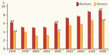 a taxa de desemprego tem vindo a aumentar, apesar de ser mais elevada na