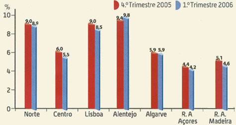 Portugal, 1998- 2006 No entanto, esta diminuição está associada ao aumento do trabalho precário e a uma diferenciação regional. O Alentejo registou uma percentagem de desemprego superior à média nacional.