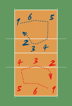 jogador colocado na posição 1 realiza o serviço que dá inicio ao set,