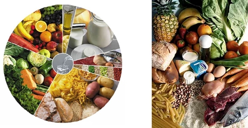 Cereais e derivados, tubérculos Alimentos que compõe este grupo: Pão, Batatas, Cereais de pequeno-almoço, Bolachas, Arroz e Massa. Fonte Nutricional de: Hidratos de carbono complexos (amidos), Proteínas de Origem vegetal, Vitaminas do Grupo B, Minerais e Fibras. Segundo as porções da Roda dos Alimentos, devem consumir-se 4 a 11 porções (28%) diárias deste grupo. Hortaliças Alimentos que compõe este grupo: hortaliças e legumes (cenouras, abóbora, cebola, pepino... Fonte Nutricional de: Vitaminas (principalmente C e vitamina A), fibras, minerais e glúcidos. Segundo as porções da Roda dos Alimentos, devem consumir-se 3 a 5 porções (23%) diárias deste grupo. Fruta Alimentos que compõe este grupo: Todo tipo de fruta fresca inclusivamente frutos tropicais. Fonte Nutricional de: Vitaminas (principalmente C e vitamina A), Fibras, Minerais, Hidratos de Carbono (glícidos). Segundo as porções da Roda dos Alimentos, devem consumir-se 3 a 5 porções (20%) diárias deste grupo. Alguns frutos fornecem também uma quantidade apreciável de água. Lacticínios Alimentos que compõe este grupo: Leite, iogurtes líquidos, iogurtes sólidos, queijo, fresco, requeijão, sobremesas lácteas e cremosas. Fonte Nutricional: Cálcio, proteínas de elevado Valor Biológico, Fósforo, lípidos e Vitaminas A, D e do grupo B. A generalidade da população deve consumir 2 porções, com excepção de crianças e adolescentes, que necessitam de 3 porções diárias. Carnes, peixe e ovos Alimentos que compõe este grupo: Carne, charcutaria, peixe, moluscos, mariscos e ovos. Fonte Nutricional: Proteínas de origem animal, lípidos, ferro, fósforo, vitaminas do grupo B e vitamina A. Segundo as porções da Roda dos Alimentos, devem consumir-se 1,5 a 4,5 porções (5%) diárias deste grupo. Deve-se consumir pequenas porções destes alimentos porque são suficientes. Gastos muito elevados, sobretudo de carne de mamíferos, ultrapassam as exigências nutricionais e prejudicam a saúde pelas gorduras saturadas que contêm. Leguminosas Alimentos que compõe este grupo: Grão, feijão, ervilhas, favas e lentilhas. Fonte Nutricional: Hidratos de carbono (Glícidos), proteína vegetal, vitaminas do complexo B, minerais (ferro e cálcio) e fibra alimentar Segundo as porções da Roda dos Alimentos, devem consumir-se 1 a 2 porções (4%) diárias deste grupo. Gorduras e Óleos Alimentos que compõe este grupo: Azeite, óleos, Banha, manteiga, natas e margarinas. Fonte Nutricional de: Lípidos (ácidos gordos saturados, mono insaturados e poli saturados), vitaminas A, E e D Segundo as porções da Roda dos Alimentos, devem consumir-se 1 a 3 porções (2%) diárias deste grupo. A água A água não tem propriamente grupo, já que todos os alimentos contêm uma pequena parte dela. A Água está presente em todos os grupos, pois faz parte da constituição de quase todos os alimentos e, sendo imprescindível à vida, deve-se beber diariamente em abundância. As necessidades de água variam entre 1,5 e 3 litros por dia. Açúcar e Produtos Açucarados Refrigerantes, bolos, chocolates, compotas, rebuçados e outros doces são exemplo de alimentos especialmente ricos em açúcar. O consumo deste tipo de alimentos deve ser feito, preferencialmente, no final das refeições, e a sua ingestão não deve ser diária mas sim restrita a ocasiões festivas. A leitura cuidadosa dos rótulos é fundamental na selecção de alimentos com reduzido teor em açúcares. Sob a designação de açúcares engloba-se, por exemplo, sacarose (vulgar açúcar de mesa), glucose, mel, frutose, … Sal e Produtos Salgados A quantidade de sal ingerida por dia deve ser inferior a 5g. A melhor forma de satisfazer esta recomendação é moderar não só o consumo de produtos salgados mas também a utilização de sal em natureza. A leitura atenta dos rótulos é fundamental na selecção de alimentos com reduzido teor de sal e sódio. A substituição do sal por ervas aromáticas e especiarias na preparação e confecção de alimentos é uma boa forma de adicionar sabor e realçar a cor aos alimentos. Erros Alimentares Para uma vida saudável, deve-se comer moderadamente. Não se deve comer muito, nem se deve comer pouco. Tanto como comer demasiado como comer pouco trazem problemas graves para a saúde como por exemplo: a obesidade e a anorexia. Obesidade Se comermos muito: