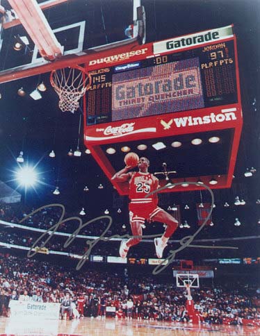 basquetebol norte-americano. C Os seus fãs vêem em Jordan uma combinação singular de graça, velocidade, raça, força, talento artístico, habilidade e um forte desejo de competição. Não há dúvidas de que Jordan redefiniu o conceito de "superstar" da NBA. Foi eleito o MVP (melhor jogador da temporada da NBA) por cinco vezes, facto somente superado por Kareem Abdul Jabbar (seis vezes), e MVP das finais por 6 vezes, facto único na história da liga. A sua pontuação máxima num único jogo foi de 69 pontos, contra o Cleveland Cavaliers o 28 de Março de 1990. Um de seus recordes mais marcantes e uma das provas de sua superioridade no basquetebol, é a sua média de pontos durante toda a carreira: 30,1 pontos em quinze temporadas. É muito conhecido pelas suas entradas. Comentadores desportivos afirmavam que ele controlava a gravidade e andava no ar, por isso recebeu o apelido de "Air Jordan". Jogos Olímpicos Jordan participou em dois Jogos Olímpicos, ganhando a medalha de ouro em ambos. Primeiro foi em Los Ángeles, 1984, derrotando a Espanha na final ainda como universitário, e posteriormente, em 1992 em Barcelona, liderando a Dream Team original, provavelmente a melhor equipe de basquetebol da história. O time contava com lendas como Magic Johnson e Larry Bird, juntamente com estrelas actuais como Scottie Pippen, Charles Barkley, Karl Malone, David Robinson, John Stockton, Patrick Ewing, Clyde Drexler e John Campbell. Há rumores de que Jordan teve influência na não selecção de Isiah Thomas para a equipe, devido a problemas entre ambos no All-Star de 1985 e pela rivalidade entre os Pistons e os Bulls no final dos 80 e princípio dos 90. Jordan, Ewing, Campbell e Chris Mullin são os únicos jogadores que ganharam uma medalha de ouro como amadores (1984) e também como profissionais (1992). Recordes e prémios . Campeão da NBA – Chicago Bulls – 1991, 1992, 1993, 1996, 1997 e 1998. . Eleito o melhor jogador da liga universitária de basquetebol dos EUA – 1984. . Eleito co-novato do ano na NBA – 1985. . Recorde de pontos consecutivos na NBA – 22 pontos contra o Atlanta Hawks – 16/04/1987. . Eleito MVP da NBA – 1988, 1991, 1992, 1996 e 1998. . Maior número de desarmes – 1988, 1990 e 1993. . Maior número de pontos em uma única partida de playoffs – 69 pontos contra o Cleveland Cavaliers – 28/03/1990. . Eleito um dos 50 maiores jogadores da história da NBA . Maior cestinha do Chicago Bulls – 29.277 pontos. . Quarto maior cestinha da história da NBA – 32.292 pontos (superado apenas por Kareem Abdul-Jabbar John Campbell e Karl Malone). . Média de 30,1 pontos por jogo na carreira, a maior da história da NBA. . Medalha de ouro nas Olimpíadas – 1984 e 1992. . Bicampeão de Enterradas Slam Dunk Contest – 1987 e 1988. . Possui uma logo marca chamada "Air Jordan", utilizada por muitos jogadores da NBA.