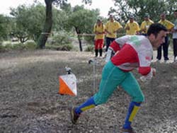 Leg: Atleta depois de marcar o seu cartão de controlo O concorrente é livre de escolher o seu próprio itinerário e obrigatoriamente deve visitar esses postos de controlo pela ordem correcta que se encontra expressa no mapa distribuído. Para comprovar a passagem pelos diferentes postos de controlo e mediante a ordem imposta, o concorrente perfura um cartão de controlo, que obrigatoriamente tem que transportar, por intermédio de um agrafador ou alicate que se encontra junto de cada baliza. Cada alicate tem um padrão de perfuração diferente e correspondente a cada um dos postos de controlo. Hoje em dia já é utilizado um “chip” identificador por cada concorrente em substituição do tradicional alicate. Orientação em Portugal Pelos responsáveis militares foi compreendido a importância que a Orientação e as suas técnicas tinham no treino das Forças Armadas. Em 1973 realizou-se o primeiro campeonato das Forças Armadas em Mafra destacando-se na sua participação as forças especiais do Exército e da Força Aérea (Pára-quedistas). Nos primeiros tempos esta modalidade desportiva apenas foi praticada por elementos militares. Em 1987, com a criação da Associação Portuguesa de Orientação (APORT), começou-se a procurar promover a Orientação no meio civil e a produzir os primeiros mapas destinados à prática desta modalidade. Até aí, os mapas utilizados eram os militares na escala de 1/25 000. Em 1990, foi fundada a Federação Portuguesa de Orientação e Portugal passou a ser membro efectivo da Federação Internacional de Orientação (IOF). Cartas