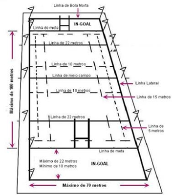 Medidas em metros Os campos de râguebi regulares são formados por dois postes na vertical, com nove metros de altura, e que distam cinco metros e sessenta centímetros um do outro, e um poste na horizontal que está a três metros do chão. (Ver figura)