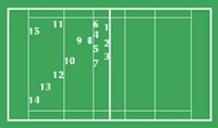 Medidas em metros O número máximo de jogadores convocados para um jogo é de vinte e dois, dos quais sete são suplentes e quinze entram no início do jogo. Um jogador que seja substituído não pode regressar ao jogo excepto se sair em caso de lesão ou em caso de troca de equipamento. Os quinze jogadores que começam inicialmente ocupam diferentes posições: 1ª linha nos1 e 3) Pilares: São os jogadores mais robustos do jogo. Possuem grande corpulência física e são muito fortes e resistentes; no2) Talonador: As suas características físicas são semelhantes às dos pilares, ele é quem lança as bolas para as tuchs. 2ª linha nos 4 e 5) Segundas-linhas (direito e esquerdo): São os jogadores mais altos. São também conhecidos por saltadores pois são eles que nas tuchs saltam para apanhar a bola. 3ª linha nos 6 e 7) Asas (aberto e fechado): Possuem não só força física, mas muita velocidade, uma vez que devem estar sempre perto da bola para conseguir a sua pose; no 8) Oitavo ou número oito: A sua velocidade é essencial. Deve conseguir controlar a melé, mas também deve estar pronto para cobrir o campo todo caso seja necessário.