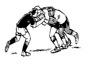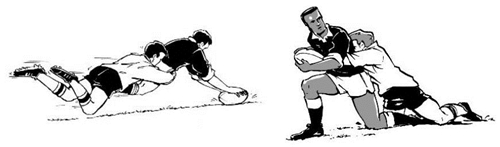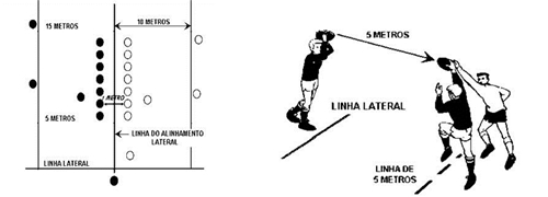 jogadores): no 10) Médio de abertura: Possui grande espírito de organização e comando, e utiliza a sua inteligência para aplicar e mudar as tácticas e estratégias conforme o desenvolvimento do jogo. O abertura está sempre na melhor posição para visualizar as falhas defensivas do adversário e, assim, pode aproveitá-las ao máximo. nos 12 e 13) Primeiro centro e segundo centro: Constituem a parte central da linha dos 3/4. Devem ser óptimos passadores já que a bola tem que passar por eles para chegar aos pontas. nos 11 e 14) Pontas (esquerdo e direito): São os que geralmente marcam os ensaios. São muito rápidos, pois são eles que furam a defesa contrária, e avançam a equipa. nos 15) Arriére ou defesa: É um jogador frio que possui reflexos rápidos. Esta posição requer muita responsabilidade porque por vezes é ele quem tem de placar o adversário para impedir o ensaio. É fora de jogo quando um jogador passa a bola para a frente, a um companheiro da sua equipa e ele toca na bola, como mostra a imagem. Ou quando um jogador chuta a bola e o seu companheiro no momento em que ele está a chutar está à sua frente, e toca na bola. (No râguebi apenas é permitido passar com a mão para trás mas com o pé é permitido passar para a frente e para trás). O ruck pode ocorrer apenas no decorrer do jogo. Para formar um ruck os jogadores devem estar ligados com pelo menos um braço em redor do corpo do adversário e a bola deve permanecer no chão. Regras do ruck: . Os jogadores não devem tocar na bola com a mão; . Um jogador não deve cair sobre a bola, pois assim está a impedi-la de sair do ruck; . Os jogadores não podem entrar no ruck de lado ou pelas costas da equipa adversária, se o fizerem estão fora-de-jogo (off-side); . Um jogador pode tirar a bola do ruck quando ela está atrás do ultimo pé do jogador de uma equipa na formação.