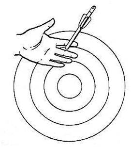 Para retirar a flecha do alvo, coloque-as entre os dedos, indicador e médio da mão esquerda com a costa da mesma encostada ao alvo e puxe a flecha com a outra mão tendo o cuidado de não entortar a haste.