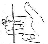 4º Dedos no gatilho: Puxar a corda usando apenas 3 dedos, o indicador, o médio e o anular encaixe da corda nos dedos.