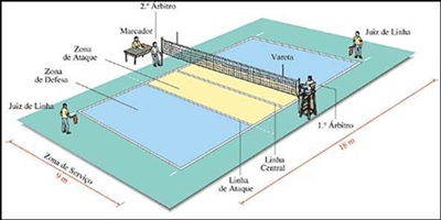 Introdução O voleibol pode considerar-se como um desporto de projecção mundial, que foi crescendo a partir de uma base muito sólida em todos os continentes. Promovido como desporto de alto valor social e físico, satisfaz os interesses dos jovens e adultos de ambos os sexos que o praticam. Por sua vez, é muito atractivo para o público, já que as competições internacionais são um espectáculo que arrastam multidões. História do Voleibol Ao longo da história, o voleibol foi evoluindo sempre com o objectivo de potenciar o espectáculo e favorecer a continuidade do jogo. Criado no ano de 1895 por William G. Morgan, director de Educação Física do YMCA (Young Men´s Christian Association), e sob a influência de James Naismith (que em 1891 criara o basquetebol), surgiu este desporto que associa as virtudes do jogo limpo e o desporto individual com as estruturas próprias do jogo de equipa por excelência. Nos seus primeiros passos, o jogo idealizado por Morgan, que na origem se chamava mintonette, foi fruto da criatividade. Morgan via que nas aulas nocturnas os alunos (geralmente homens de negócios) não se adaptavam bem ao basquetebol e pensou num desporto mais recreativo. Em princípio, o ténis parecia cumprir todos os requisitos para este grupo, mas existia o problema óbvio da infra-estrutura. Por isso, inventou um jogo de equipa com uma rede colocada em média a 1,98m do solo (actualmente é colocada mais a cima) e, depois de experimentar várias bolas, mandou fabricar uma de couro com câmara-de-ar em borracha. Um ano depois da sua criação, o professor Halstead propôs a Morgan alterar o nome para o de voleibol, sugestão que bem acolhida por todos. O voleibol popularizou-se rapidamente nos Estados Unidos e no Canadá, sendo de imediato introduzido nas Filipinas e no Extremo Oriente. Só depois da I Guerra Mundial é que adquiriu popularidade em terras europeias. O voleibol moderno, na categoria masculina, estreou-se nos Jogos Olímpicos de Roma (1960) como desporto de exibição. Quatro anos mais tarde, nos Jogos Olímpicos de Tóquio (1964) fez a sua aparição no programa oficial na categoria masculina e feminina. Caracterização do Voleibol O voleibol é um jogo desportivo colectivo praticado por duas equipas, separadas por uma rede. O seu objectivo é fazer cair a bola no campo do adversário e evitar que ela caia no seu próprio campo. O recinto do jogo é rectangular, delimitado por duas linhas de fundo e duas linhas laterais.