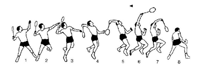. Remate (Smash) - é o batimento mais importante do jogo; - este batimento é executado por cima da cabeça; - sendo o volante batido energicamente impondo-lhe uma trajectória descendente o mais rápida e picada possível; - O remate pode ser executado em qualquer parte do campo, embora seja, geralmente executado entre a linha de serviço curto e linha de serviço dos pares (para trás da linha de serviço de pares tem poucas possibilidades de êxito);