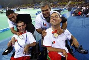 João Paulo Fernandes (medalha de ouro) venceu António Marques (medalha de prata) no jogo para atribuição do ouro ESPÍRITO DESPORTIVO . Ter espírito desportivo é, em primeiro lugar e acima de tudo, observar estritamente todas as regras. É procurar nunca cometer deliberadamente uma falta. . Ter espírito desportivo é respeitar o árbitro. A presença do árbitro ou do júri revela-se essencial de todas as competições. O árbitro tem um papel difícil a desempenhar. Ele merece inteiramente o respeito de todos. . Ter espírito desportivo é aceitar todas as decisões do árbitro sem pôr em causa a sua integridade. . Ter espírito desportivo é reconhecer com dignidade a superioridade do adversário na derrota. . Ter espírito desportivo é aceitar a vitória com modéstia e sem ridicularizar o seu adversário. . Ter espírito desportivo é saber reconhecer a boa actuação e os bons desempenhos do seu adversário. . Ter espírito desportivo é querer competir na igualdade com um oponente. É contar apenas com o seu talento e habilidade para tentar obter a vitória. . Ter espírito desportivo é recusar ganhar através de meios ilegais e violentos. . Ter espírito desportivo, para o árbitro, é conhecer bem todas as regras e aplicá-las com imparcialidade. . Ter espírito desportivo é manter a dignidade em todas as circunstâncias. É demonstrar que temos domínio sobre nós mesmos. É recusar que a violência física ou verbal tome conta de nós. BIBLIOGRAFIA . http://napsi.no.sapo.pt/espirito.html . http://www.idesporto.pt/DATA/DOCS/LEGISLACAO/doc121.pdf . http://www.idesporto.pt/DATA/DOCS/LEGISLACAO/doc120.pdf . http://paraolimpicos2008.blogspot.com/ . http://healthcare.utah.edu/orthopaedics/story/chriswaddell.html . http://www.disaboom.com/Blogs/karaswims/archive/2008/09/05/unequal-treatment-of-paralympic-athletes-where-the-u-s-is-way-behind.aspx . http://www.voleiparaolimpico.org.br/noticias178.htm . http://images.beijing2008.cn/20070529/Img214082783.jpg . http://www.abc.net.au/reslib/200603/r75766_1070926.jpg . http://d.yimg.com/eur.yimg.com/ng/sp/empics/20080509/16/3577225105-athletics-visa-paralympic-world-cup-2008-sportcity-manchester.jpg . http://www.chinasportstoday.com/images/blog/79.jpg . http://www.zimbio.com/pictures/ere0_NgkB6y/Olympics+Day+10+Athletics/LeI 03WWAK67/Usain+Bolt . http://www.iaaf.org/mm/photo/competitions/competition/04/71/08/47108_full-prt.jpg . http://cache.boston.com/universal/site_graphics/blogs/bigpicture/swim_06 _30/swim1.jpg . http://nazret.com/blog/media/blogs/new/Img214556852.jpg
