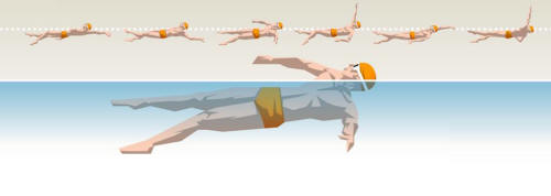 É o estilo mais rápido, nele o desportista tem que manter uma parte do seu corpo sempre fora da agua (exceto apos a viragem). . Os braços e as pernas movimentam-se alternadamente. . O toque no sensor que regista o tempo é feito com um dos braços. Costas A entrada é efetuada dentro da agua , os nadadores tem as mãos postas nos blocos de partida (é proibido apoiar-se nela com os pés). Ao sinal de partida e após as viragens, os nadadores deverão sair da parede e nadar na posição de costas durante toda a prova e alguma parte do seu corpo devera permanecer emersa (exceto na execução na da partida, viragem, e ultima braçada o corpo pode estar submerso ate 15 m de parede). A posição normal de costas pode incluir um movimento de rotação do corpo < 90º com a horizontal. A posição da cabeça é irrelevante. A regra de chegada de costas foi oficialmente clarificada. . No inicio da viragem pode ser utilizado o movimento simultâneo dos dois braços. . O nadador terá que retomar a posição de costas logo que deixe a parede. . Ao terminar a prova, o nadador deve tocar a parede na posição de costas.