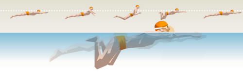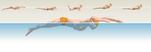 . A partida é dentro da agua. . Durante a prova o movimento das costas não pode exceder o angulo de 90º com a horizontal. . O nadador deve manter sempre uma parte do seu corpo fora da agua, exceto os 15 m depois da viragem, no começo da prova, e na ultima braçada) . A rotação dos braços é feita alternadamente, o movimento das pernas é igual ao do crawl. . O nadador deve terminar a prova tocando com as costas na parede. Bruços Bruços é o mais antigo dos estilos de natação pura. Em 1798, o bruços era o estilo mais praticado em toda a Europa. Desde o início da primeira braçada após a partida e depois de cada viragem, o corpo deve permanecer na posição de bruços. Durante toda a prova de bruços deve haver um movimento simultâneo de braços e de pernas As mãos devem ser levadas para a frente juntas e em simultâneo, em movimento vindo do peito. Os cotovelos devem ser mantidos dentro de água, (exceto na última braçada antes da viragem, durante a viragem e na última braçada da chegada. As mãos não devem ser puxadas atrás da linha das ancas, (exceto durante a primeira braçada após a partida e após cada viragem). Durante cada ciclo completo, cabeça do nadador deve romper a superfície da água (exceto após a última braçada, desde que quebre a superfície da água em qualquer ponto do último ciclo, completo ou incompleto, que preceder o toque na parede). Na viragem é permitida uma pernada de golfinho (de cima para baixo). Depois disto, todos os movimentos das pernas devem ser simultâneos e no plano horizontal. Os pés devem estar virados para fora durante a impulsão. Em cada viragem e no final da prova, o toque na parede deve ser feito com ambas as mãos.