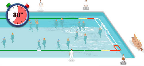 Cada equipe possui 30 segundos para efetuar uma jogada, sendo esse tempo cronometrado pelos árbitros de mesa, se uma equipa não marcar um golo neste período de tempo, devera entregar a bola ao adversário.