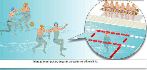 rematar com um punho ou entrar na zona de 2 metros. Já as faltas graves são atirar água a cara do adversário, agarrar no adversário, puxar etc. atrapalhar uma cobrança de falta e desrespeitar o árbitro.