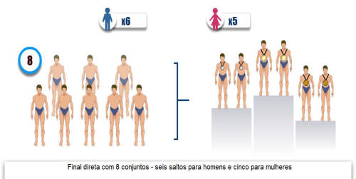 Pares/sincronizado Na prova final de sincronizado participam 8 pares. O numero de saltos efetuados é igual a provas individuais.