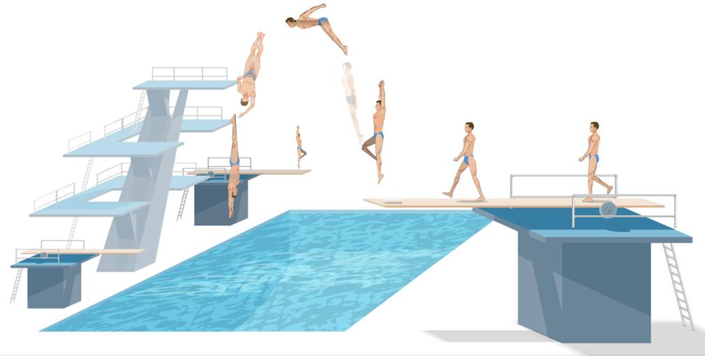 Provas Este desporto é praticado por ambos os sexos, podendo ser individual ou de pares (sincronizado).
