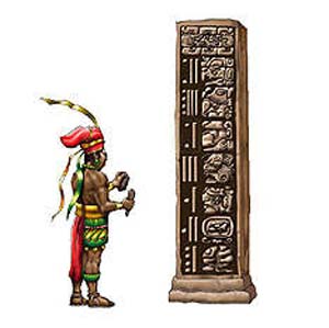 Imagem 2 - Representação de um Deus Maia Cálculo do Tempo Os calendários desta civilização foram o centro da sua vida e o seu maior feito cultural. Os maias eram grandes observadores do tempo, e possuíam diversos sistemas para o medir. Os calendários maias mais conhecidos são o Tzolkin (baseado no sistema solar) e o Haab (baseado no sistema lunar), que tinham um ciclo de 260 e 365 dias respectivamente. Os calenários maias estavam baseados em precisas observações astronómicas. Mediram com exactitude o ano solar e assim puderam desenhar o “passar do tempo” no passado e no futuro.