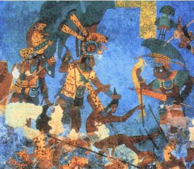 Imagem 5- obra de arte maia As artes eram com frequência utilizadas para decorar templos e monumentos religiosos para representar membros da classe no poder. A pintura era utilizada em grandes representações murais e também na decoração da cerâmica. A arquitectura maia participou nas características generais das culturas americanas, mas com estilos próprios. As construções mais fizeram-se basicamente de madeira e pedra.