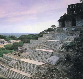 Imagem 6 - Pirâmide Maia A escultura maia inclui uma grande variedade de manifestações. As suas principais características são a utilização do relevo, a monumentalidade no tratamento dos temas e o uso da cor no acabado superficial.