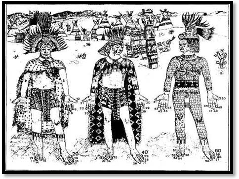 Imagem 12 Vestimentas dos Maias Sustentabilidade própria A base da economia era a agricultura primitiva. O trato da terra era comunal, em sistema rotativo de culturas, sem adubagem ou técnica elaborada, o que levava ao rápido esgotamento do solo e seu consequente abandono. Praticavam a caça, pesca e criavam animais para a alimentação. Desconheciam no entanto a tracção animal, o arado e a roda. Por falta de matéria-prima local não conheceram também a metalurgia, mas desenvolveram uma importante indústria lítica (de pedra) que lhes fornecia armas, enfeites e instrumentos de trabalho. A produção de cerâmica, cestaria, tecelagem e a arte lapidária também tiveram muita importância na civilização Maia.