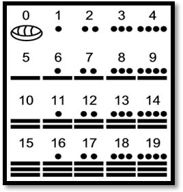Imagem 16 - Numeração Maia Astronomia: Os maias sentiam-se curiosos com o Universo que os rodeava e assim sendo, decidiram explorá-lo. Estes chegaram a cálculos asombrosos pela sua exactitude, como por exemplo o ciclo solar, que o estabeleceram em 3.652.420 dias e o ciclo lunar em 2.953.086 dias. Escritura: A cultura maia desenvolveu o sistema de escritura mais completo de todos os povos indígenas americanos, com ele escreveram todo tipo de textos: de medicina, de botânica, de história, de matemáticas, de astronomia… Estima-se que existam 13 escritos principais da história Maia. Anexo