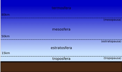 * P.S.: O aumento da concentração do oxigénio permitiu a formação da camada de ozono, que filtra a radiação ultravioleta do Sol, possibilitando a vida na Terra. Atmosfera actual É vista a partir do Space Shuttle, isto é, da órbita terrestre, a atmosfera parece-se com uma ligeira neblina que recobre o planeta. Com efeito, se compararmos a sua espessura (cerca de 12 quilómetros, na parte da atmosfera mais densa) com o diâmetro da Terra (12640 quilómetros), apercebemo-nos de como é fina esta bolha de ar na qual respiramos 25 vezes por minuto e que nos mantém vivos. Quais os gases que compõem a atmosfera terrestre? O azoto é o que está presente em maior quantidade, constituindo 78%, enquanto o oxigénio representa 21%. Existem, contudo, outros gases, como o dióxido de carbono, o ozono e o vapor de água. Todos sabemos que a atmosfera é o grande pulmão do planeta. Menos conhecido é o facto de esta caixa de ar funcionar como «cobertor térmico». De facto, calculando a temperatura média do nosso planeta com base na distância do Sol, descobrimos que esta deveria situar-se em cerca de -20ºC: uma temperatura digna dos pólos. Então porquê que não estamos ainda congelados? Pois bem, alguns gases atmosféricos, em especial o vapor de água e o dióxido de carbono, exercem um efeito de estufa que faz subir a temperatura média do nosso planeta até cerca de 15ºC. Como o vidro das estufas, a atmosfera deixa passar os raios solares, mas absorve uma parte desse calor, que, exactamente por causa destes gases, não consegue dispersar-se nos espaços cósmicos. Diferentes camadas da atmosfera Troposfera . É a camada da atmosfera que está em contacto com a superfície terrestre e que contém o ar que respiramos. . Tem altitude entre 8Km a 16Km . É a camada menos espessa, mas é a mais densa. . O ar junto ao solo é mais quente, diminuindo de temperatura com a altitude até atingir -60ºC . É nela que ocorrem os fenómenos metereológicos Estratosfera . Situa-se entre os 12Km a 50Km . É aqui que está a camada de ozono. . Nesta camada a temperatura aumenta de -60ºC a 0ºC. Este aumento deve-se à interacção química e térmica entre a radiação solar e os gases aí existentes. . As radiações absorvidas são as ultravioletas Mesosfera . Situa-se entre os 50Km a 80Km . Trata-se da camada mais fria da atmosfera. . A temperatura volta a diminuir com a altitude, chegando aos -100ºC aos 80Km. . A absorção da radiação solar é fraca. . Nesta camada ocorre os conhecidos fenómenos das estrelas cadentes Termosfera . É a camada mais extensa. . Começa nos 80Km e vai para além dos 1000Km. . Trata-se da camada mais quente da atmosfera. . A temperatura pode atingir os 1000ºC. . Absorvem-se as radiações solares mais energéticas (energia superior a 9,9 x10-19 J). . Esta camada é atravessada por meteoros e nela se formam auroras boreais Exosfera . Encontram-se para além dos 500Km de altitude . Também podem ocorrer nela auroras boreais