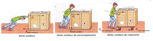 Atrito estático e atrito cinético Quando temos um corpo parado e o queremos pôr em movimento é necessário empregar uma força maior do que aquela que é necessário aplicar quando o corpo já está em movimento