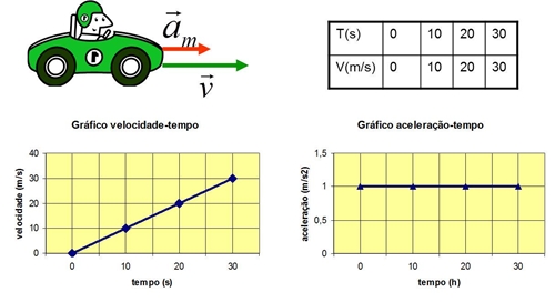 am = aceleração média (m/s2) ∆v = variação da velocidade (m/s) ∆t = intervalo de tempo (s) Acelerómetro – são dispositivos constituídos por um pêndulo cujo movimento informa acerca da aceleração de um veículo (figura 33-A, pág. 27) Movimento RECTILÍNEO UNIFORMEMENTE ACELERADO