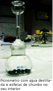 Quadro 1 Agora pode-se responder às questões postas nos “Objectivos”: “Como identificar materiais num laboratório?” Para identificar materiais num laboratório, basta calcular a Densidade Relativa de líquidos ou sólidos e comparar os valores obtidos com os valores tabelados (quadro 1). “ Como avaliar o grau de pureza de algumas substâncias?” Avalia-se o grau de pureza de algumas substâncias através de observação directa, no caso desta actividade experimental foi possível observar que as esferas de chumbo pois tinham um pequeno corte e indirectamente através dos resultados obtidos terem um erro mais acentuado, mesmo tendo respeito todos os métodos da actividade experimental e sem erros da nossa parte. Também, porque a professora nos explicou que a pureza das substâncias utilizadas não era das melhores. Observações: . Os valores que o meu grupo obteve, não estão totalmente de acordo com os valores tabelados no quadro 1, devido ao facto de a actividade experimental ter sido feito com a água à temperatura de 16ºC e na Tabela de Densidade Relativa [1] os valores estão tabelados em relação à água a 4ºC. . Outro factor que nos prejudicou, foi que as substâncias utilizadas nesta actividade experimental não se encontravam no seu “normal” grau de pureza. . Mesmo com estas limitações que apresentada, o meu grupo poderá afirmar que os resultados desta actividade experimental foram satisfatórios. Bibliografia . Simões Teresa, Queirós Maria, Simões Maria. «Química em Contexto» Química 10ºano 2009; Porto Editora; pág.97 à 99 . Simões Teresa, Queirós Maria, Simões Maria. «Técnicas Laboratoriais de Química – Bloco I»; Porto Editora; pág.91 . http://images.google.pt/images?hl=pt-PT&um=1&sa=1&q=picnometros+de+ solidos+e+liquidos&btnG=Pesquisar+imagens&aq=f&oq=&start=0