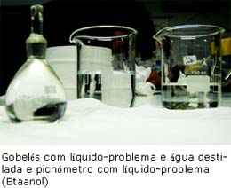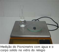 Capítulo 4 - Execução Líquido-problema 1. Reuniu-se todo o material necessário à actividade; 2. Mediu-se a massa do picnómetro vazio três vezes, calculando-se a sua média; 3. Mediu-se a temperatura da água destilada contida num gobelé com um termómetro (a água encontrava-se a 16 ̊C); 4. De seguida, encheu-se o picnómetro com a água destilada e acertou-se o nível da água (limpando sempre o exterior do picnómetro); 5. Mediu-se a massa do picnómetro com a água destilada no seu interior por três vezes e calculou-se a sua média; 6. Retiramos a água destilada do interior do picnómetro e adicionou-se o líquido - problema e mediu-se a sua massa (novamente por três vezes e calculou-se a média); 7. Depois, calculamos a densidade do líquido - problema em função dos valores obtidos na massa do picnómetro com água destilada e com o líquido – problema. Sólido 1. Reuniu-se todo o material necessário à actividade; 2. Fez-se a medição do corpo sólido três vezes; 3. Em seguida, lavou-se o picnómetro com água destilada; 4. Encheu-se o picnómetro com água destilada, e com um arame “furamos as bolhas de ar” que se encontravam no seu interior; 5. Acertou-se o nível de água no picnómetro e limpou-se o seu exterior (para não interferir na sua medição); 6. Depois, mediu-se a massa do sólido no vidro do relógio e do picnómetro com a água destilada (primeiro fez-se a medição do sólido no vidro do relógio e premiu-se CAL, e só depois é que se mediu as duas massas), fazendo esta medição por três vezes; 7. Retirou-se da balança, e em seguida adicionamos ao picnómetro o corpo sólido e reajustou-se o nível de água, limpou-se novamente o seu exterior; 8. Calculou-se a massa do picnómetro com o corpo sólido no seu interior por três vezes; 9. Para finalizar, calculamos a densidade do corpo sólido em função da massa do picnómetro com a água e ao lado o corpo sólido no vidro de relógio e a massa do picnómetro com o corpo sólido no seu interior. Capítulo 5 - Resultados Obtidos Líquido-problema
