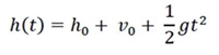 Onde h0 e v0 são a posição e velocidade iniciais do movimento e escrevemos h(t) tomando um referencial vertical com sentido positivo para baixo. Com essa convenção para h(t), a aceleracão g tem sentido positivo, o que resulta no sinal positivo no termo quadrático em t. Se o corpo começar do repouso, v0 = 0. Se adicionalmente tomamos como origem de h a posição inicial do corpo h0 = 0 e temos a relação simples