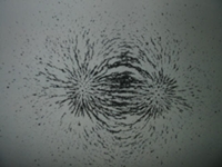 Fig. 1 – Campo magnético produzido por um íman natural O que é o electromagnetismo? As primeiras observações sobre fenómenos magnéticos realizaram-se na antiga cidade de Magnésia, na Ásia Menor, onde foram encontradas pedras-ímanes que tinham a propriedade de atrair peças de ferro. Mas as propriedades magnéticas não se devem apenas a ímanes naturais. Uma corrente eléctrica produz efeito magnético. No século XVIII suspeitou-se de uma ligação próxima entre a electricidade e o magnetismo. Só em 1820, o físico Oersted descobriu o efeito magnético da corrente eléctrica. É este efeito que está na base do electromagnetismo. Campo magnético Um íman é um objecto que se comporta da mesma forma que a pedra-íman, atraindo pequenos objectos de ferro ou de aço. À propriedade que os ímanes apresentam para atrair certos materiais dá-se o nome de magnetismo. Todos os ímanes, independentemente da sua forma, têm dois pólos: o pólo norte (convencionalmente pintado de vermelho) e o pólo sul (pintado de azul ou branco). Um íman em barra, quando suspenso por um fio, orienta-se aproximadamente, na direcção norte-sul geográfico (princípio básico de uma bússula). As bussúlas são constituídas por pequenas agulhas de aço magnetizado – agulha magnética – que têm a possibilidade de girar em torno de uma pequena haste. Como a Terra se comporta como se tivesse um grande íman no seu interior, o pólo norte da agulha magnética é atraído pelo pólo sul magnético da Terra, que fica perto do Pólo Norte geográfico. Daí a bússula indicar sempre o norte. Todos os ímanes criam à sua volta um campo magnético. Um campo magnético pode ser visualizados, por exemplo, com limalha de ferro e com pequenas bússulas. No caso do campo magnético criado por um íman em barra: a limalha de ferro orienta-se segundo determinadas linhas, as linhas de campo; e as agulhas também se orientam segundo as linhas de campo. Oersted descobriu o efeito magnético da corrente eléctrica, ao fazer passar uma corrente eléctrica num condutor rectilíneo notou que: uma agulha magnética rodava, ao interromper a passagem da corrente eléctrica, a agulha retomava a sua posição inicial, ao fazer passar a corrente em sentido oposto, a agulha desviava-se igualmente mas em sentido contrário. Oersted concluiu, assim, que uma corrente eléctrica cria um campo magnético, à semelhança do que se passa com um íman.