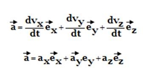 Se o vector velocidade, v, for expresso em função das suas componentes cartesianas, vx, vy e vz, o vector aceleração, a, será dado por: