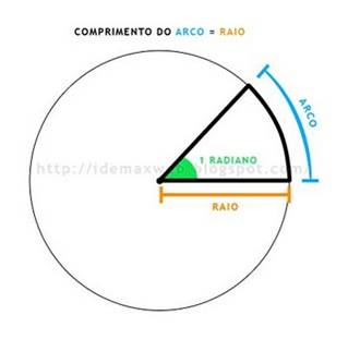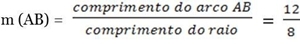 Fig.8 – radiano = raio/comprimento do arco. Exemplo: Para determinar a medida em radianos de um arco de comprimento igual a 12 cm, em uma circunferência de raio medindo 8 cm, fazemos: