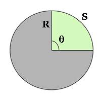 Portanto, m (AB) = 1,5 radianos. O ângulo θ, que deve vir expresso em radianos, relaciona-se com a distância percorrida sobre a trajectória, S, através de: