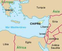 Imagem que representa a localização de Chipre Bandeira A Bandeira de Chipre é um dos símbolos oficiais de Chipre. Foi adotada a 16 de Agosto de 1960 após escolha do desenho em um concurso realizado no mesmo ano. Os desenhos propostos não poderiam incluir a cor azul, nem vermelha, nem deveriam conter elementos que remetessem aos grupos étnico-religiosos da ilha como a cruz cristã, ou a crescente islâmica. Seu desenho consiste em um rectângulo de proporção largura-comprimento de 3:5 de fundo branco. No centro há um mapa de toda a ilha na cor ouro por cima de dois ramos de oliveira.