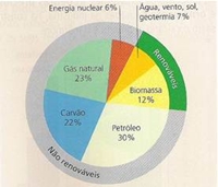 . A nível Mundial, o mineral energético mais consumido é o petróleo (30%); . Segue-se o gás natural (23%); . Depois o carvão mineral (22%); . Por último, estão as menos consumidas (biomassa e energia nuclear). Energias renováveis: são aquelas que renovam, isto é, que não se esgotam (pelo menos enquanto a Terra durar). Em princípio não são poluentes e estão ao dispor do Homem gratuitamente. Como exemplos temos: . Energia Solar; . Energia Eólica; . Energia Hidráulica; . Energia Biomassa; . Energia Geotérmica; . Energia das Ondas e Marés. Energias não renováveis: ou fósseis, são aquelas que se obtêm de fontes que, mais cedo ou mais tarde, acabam por se esgotar porque a sua formação é inferior ao seu consumo. São poluentes e a sua formação orgânica (excepção ao Urânio), pode levar milhões de anos até chegar ao seu estado final. Como exemplos temos: . Petróleo; . Carvão Mineral; . Gás Natural; . Urânio. Carvão Mineral: