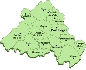 . Arronches . Avis . Campo Maior . Castelo de Vide . Crato . Elvas . Fronteira . Gavião . Marvão . Monforte Fig.4 - Alto Alentejo . Mora . Nisa . Ponte de Sôr . Portalegre Os principais núcleos urbanos são as cidades de Elvas e Portalegre. A agricultura e a pecuária são as actividades que marcam o perfil social e económico da sociedade alentejana, pois o desenvolvimento industrial e o sector dos serviços sempre foram bastante modestos. As principais culturas são o trigo, o centeio, o girassol e o tomate. São igualmente importantes as produções de cortiça, vinho e azeite. O declínio da agricultura tem sido parcialmente compensado pelo progresso de actividades relacionadas com o turismo rural. O clima é temperado mediterrânico, com verões quentes e secos e invernos chuvosos e suaves. O relevo da região caracteriza-se pela grande uniformidade de planícies, de onde ressaltam massas montanhosas de fraca altitude. Évora tem fundação pré-romana mas foi durante o domínio romano que as suas terras se tornaram importantes. Évora era designada pelos Romanos, no tempo do imperador Júlio César, de Liberalitas Júlia. Do património arquitectónico, destaca-se o Castelo de Alter do Chão, mandado construir por D. Pedro I, em 1359.