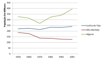 Fig.10 - Evolução populacional das três sub-regiões entre 1950 a 2001
