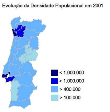 Em 1991, em todas as sub-regiões, e no continente, os valores dos jovens são relativamente iguais aos dos idosos, enquanto em 2001, em todas as sub-regiões, e no continente, os valores dos idosos são sempre significativamente maiores que os dos jovens, o que traduz os baixos valores da taxa de natalidade, que por sua vez são traduzidos por, a crescente presença da mulher no mercado de trabalho, e a maior utilização de métodos contraceptivos. A classe dos adultos é sempre muito significativamente maior que as outras, uma vez que engloba muitas classes de diferentes idades. Pirâmides Etárias Lezíria do Tejo A pirâmide etária da Lezíria do Tejo, em 2001, apresenta uma base estreita, ou seja, valores da taxa de natalidade baixos, devido à crescente presença da mulher no mercado de trabalho, e à maior utilização de métodos contraceptivos. Já a classe etária dos adultos, representada a meio da pirâmide, tem valores mais altos nas classes de jovens adultos, que vão diminuindo conforme a crescente de idade. O topo desta pirâmide é largo, o que traduz uma população envelhecida, uma vez que, a EMV desta região, em 2001, é alta. Existem mais idosos do sexo feminino do que do sexo masculino. Classes ocas: 5-9 – Homens – 2,3 Mulheres – 2,2 30-34 – Mulheres – 3,4 45-49 – Mulheres – 3,2 55-59 – Mulheres – 3,2 70-74 – Mulheres – 3,0 Alto Alentejo A pirâmide etária do Alto Alentejo, em 2001, apresenta uma base estreita, ou seja, novamente, baixos valores da taxa de natalidade, devido à crescente presença da mulher no mercado de trabalho, à maior utilização de métodos contraceptivos, e também ao êxodo rural, onde os jovens, de quem depende os valores da taxa de natalidade, emigram para as regiões do litoral, onde se situam as grandes cidades. Já a classe etária dos adultos, que se situa a meio da pirâmide, regista aumentos e diminuições, consoante a crescente de idade. O topo da pirâmide é muito largo, devido à muito envelhecida população desta região, e á alta EMV. Existem, uma vez mais, mais idosos do sexo feminino, do que do sexo masculino. Classes ocas: 0-4 – Homens – 2,0 30-34 – Homens – 3,0 55-59 – Homens – 2,5 70-74 – Homens – 3,2 Mulheres – 3,7 Algarve A pirâmide etária do Algarve, em 2001, apresenta uma base estreita, que traduz baixos valores da taxa de natalidade, devido à crescente presença da mulher no mercado de trabalho, à maior utilização de métodos contraceptivos, e ao grande turismo desta região. Já a classe etária dos adultos, situada a meio da pirâmide, apresenta valores crescentes dos jovens adultos aos adultos de meia-idade, começando depois a diminuir até aos idosos. O topo, onde estão os idosos, é largo, devido à alta EMV. Como natural, existem mais idosos do sexo feminino, do que do sexo masculino. Classes ocas: 30-34 – Mulheres – 3,5 65-69 – Homens – 2,2 Mulheres – 2,6 Continente Nesta pirâmide etária de 2001, do Continente, a base é estreita, onde são traduzidos os baixos valores da taxa de natalidade devidos, à maior utilização de métodos contraceptivos, e à crescente presença da mulher no mercado de trabalho. Já na classe dos adultos, e novamente, os valores aumentam dos jovens adultos aos adultos de meia-idade, diminuindo então até aos idosos. O topo da pirâmide é largo no sexo feminino, mas estreito no sexo masculino, apesar da alta EMV. Classes ocas: 30-34 – Mulheres – 3,7 70-74 – Homens – 1,9 Mulheres – 2,5 Índices demográficos