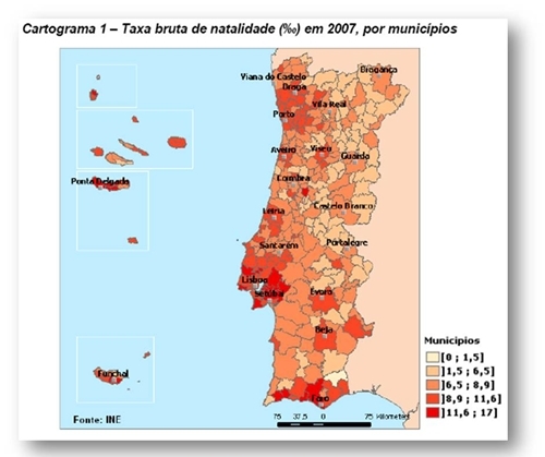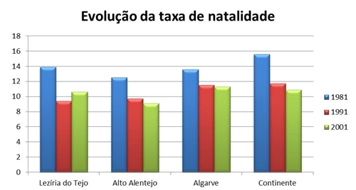 Como se observa no cartograma1, as sub-regiões Lezíria do Tejo e Alto Alentejo não registam uma elevada taxa de natalidade, mas o mesmo não acontece com o Algarve, que tem uma elevada taxa de natalidade. A taxa de natalidade é mais elevada no Algarve devido ao maior dinamismo da região, maior número de população jovem, entrada de muitos emigrantes e muita oferta de trabalho. O Algarve é uma zona em que os valores da T.N e o I.S.F. são muito diferentes do resto do país, devido à sua grande actividade turística, contrariamente ao do Alto Alentejo, que sendo uma região do interior não tem os mesmos atractivos do que o Algarve em termos de trabalho e fixação de novos residentes na região. Na maior parte do país o I.S.F e a T.N são muito baixas devido ao acesso do planeamento familiar, maior utilização dos métodos contraceptivos, progressiva entrada da mulher no mercado de trabalho, aumento dos encargos sociais decorrentes do número de filhos, casamento tardio, redução da taxa de nupcialidade, e aumento da taxa de divorcialidade. Com o declínio da fecundidade surgem problemas: . Diminuição do número de activos jovens para substituir as gerações mais idosas. . Maior envelhecimento da população. . Maior pressão para os adultos no que respeita aos descontos para a segurança social. . Transformação da sociedade numa sociedade individualista. Envelhecimento da população