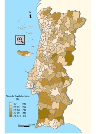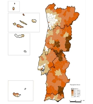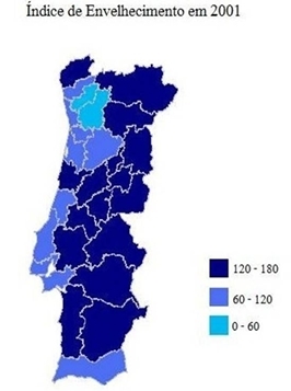 É notável no mapa de Portugal Continental, que se encontram graves assimetrias em relação ao envelhecimento da população. O modo como está concentrado na zona Interior do país, a maior quantidade de população envelhecida, é preocupante. Claro está, que ao contrário desta, no Litoral está localizada a maior percentagem de jovens do nosso país. Esta grande e clara diferença, deve-se a vários tipos de problemas. Em primeiro lugar, a zona Litoral é muito diferente da zona Interior. Enquanto esta apresenta menos serviços disponíveis á população, no Litoral, as pessoas desfrutam de todas as coisas que precisam, para ter um nível de vida mais elevado. A maior oferta de emprego, é certamente o motivo mais forte pelo qual o êxodo* rural tem aumentado de uma maneira colossal. O nível económico que cada pessoa tem, é o factor mais importante para um elevado nível e boa qualidade de vida, para além da segurança que cada um precisa para residir num certo local de uma forma agradável e saudável. O nível educacional que na zona Interior não se disponibiliza, é outro dos mais destacáveis, pelo qual as assimetrias entre estas duas regiões são tão significativas, pelo qual no Litoral, se encontra a mais elevada percentagem de população adulta e jovem. O envelhecimento da população na zona Interior, têm-se notado e sentindo significante. Com este envelhecimento e êxodo rural, surge o aumento da taxa de mortalidade, e a diminuição da taxa de natalidade, o aumento de encargos para o Estado (pensões e reformas, apoio social, construção e manutenção de equipamentos de apoio-lares, assistência á saúde). Estes são exemplos das causas que esta realidade tem provocado. Esta realidade não só tem vindo a progredir ao longo dos anos, como vai continuar se não se tomarem as devidas providências. Olhando para o mapa, concluímos que existem grandes assimetrias entre estas duas zonas (Litoral e Interior).